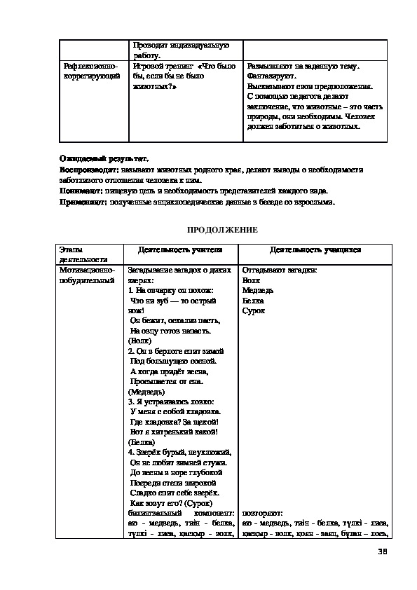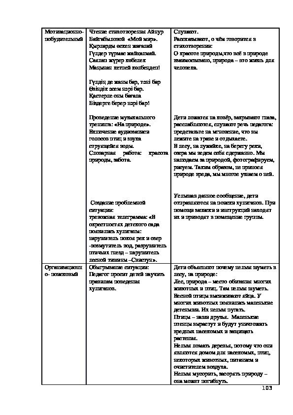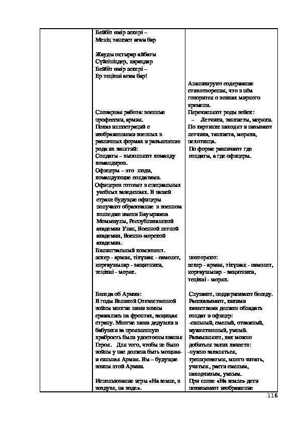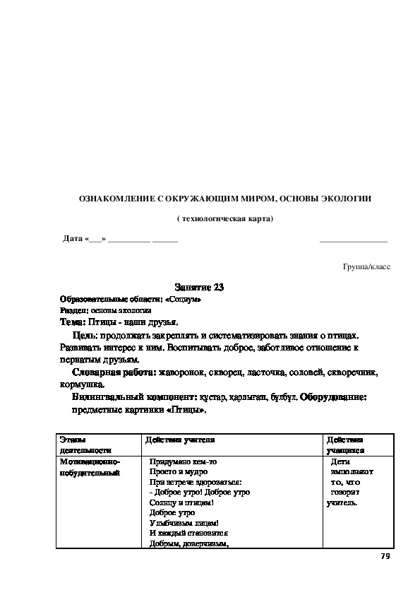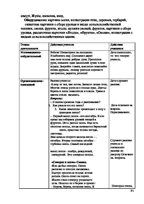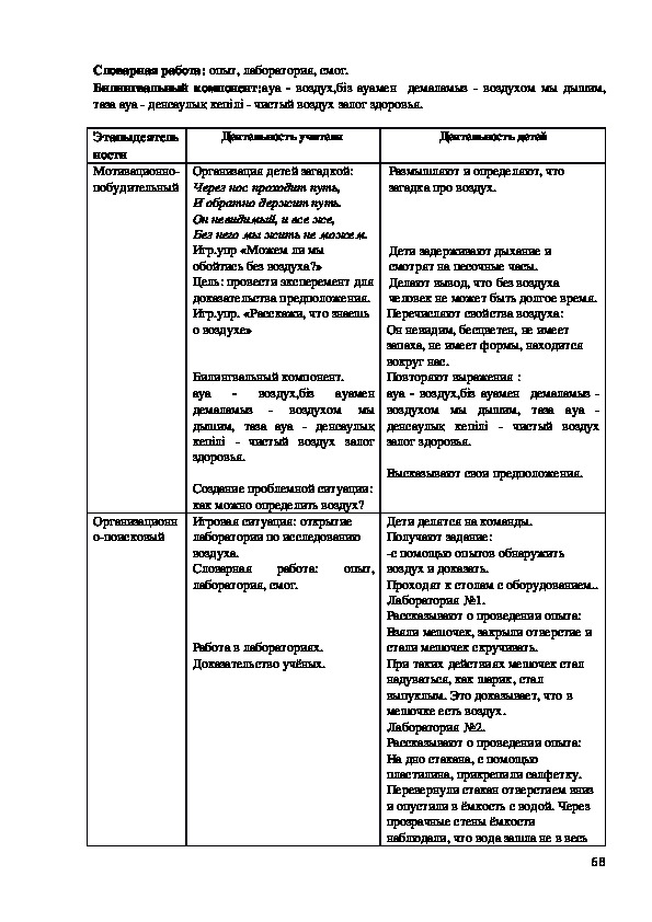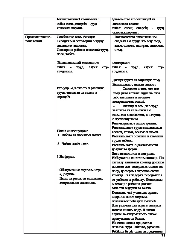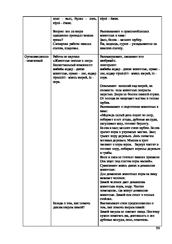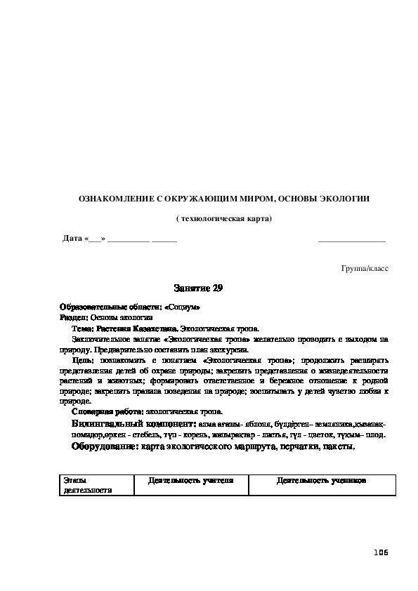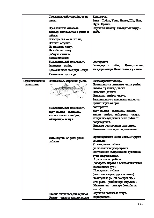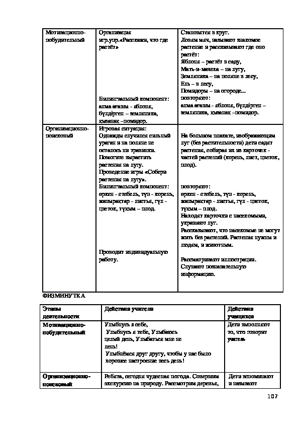 Билингвальвый компонент: ағаш, шөп, гүл, құc, жөндік.