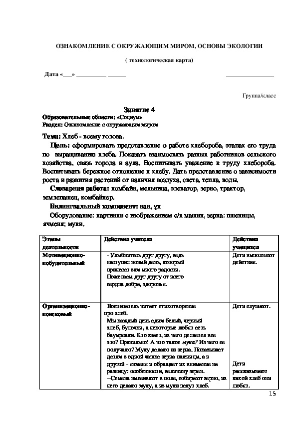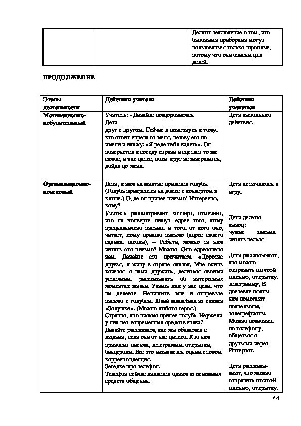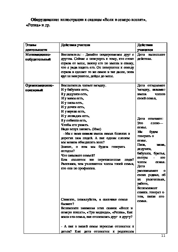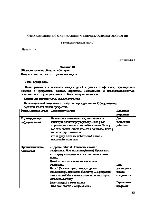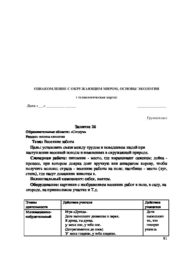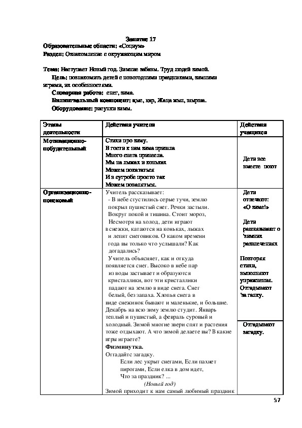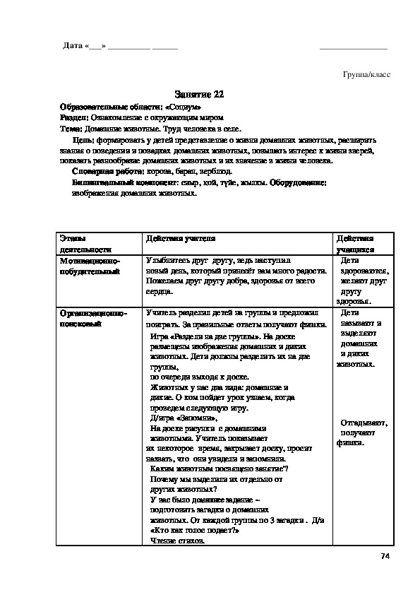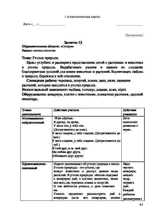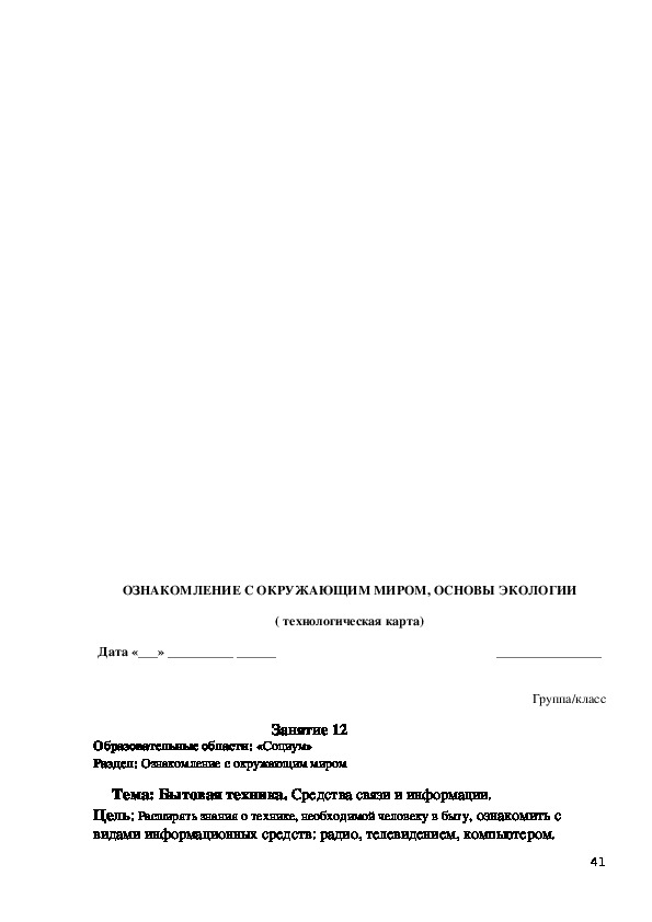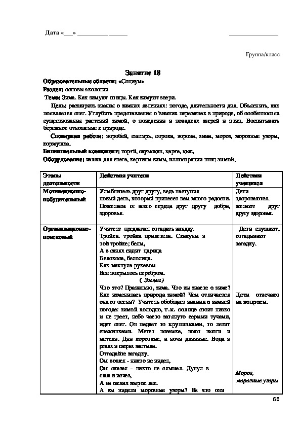с чем будут знакомиться на занятии. Далее