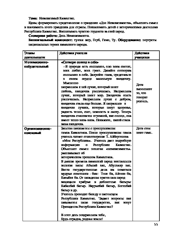 ценностями народов РК, с трудом старших. Учитель должен помочь детям