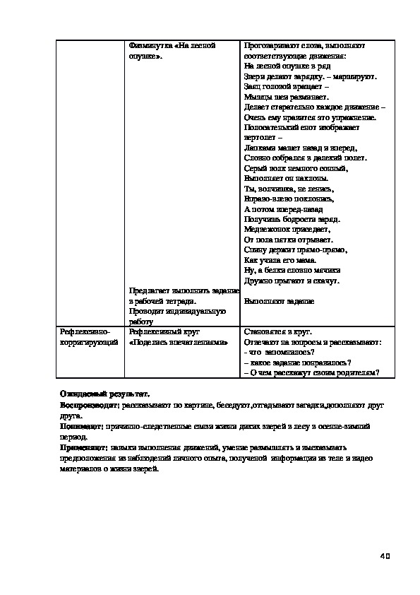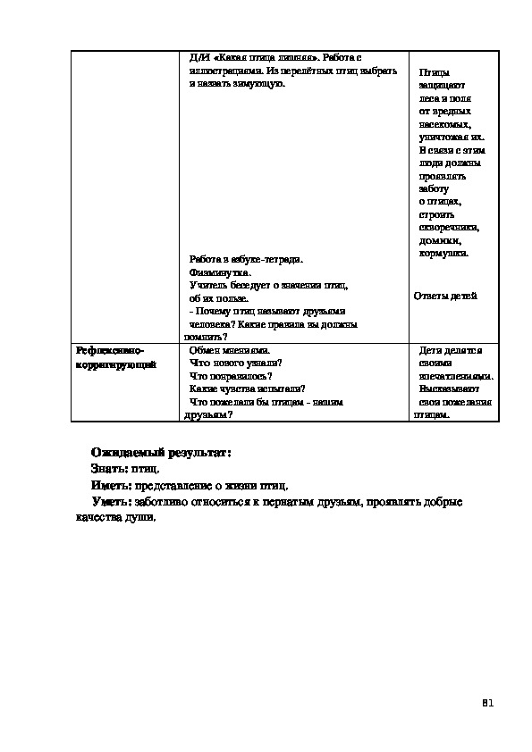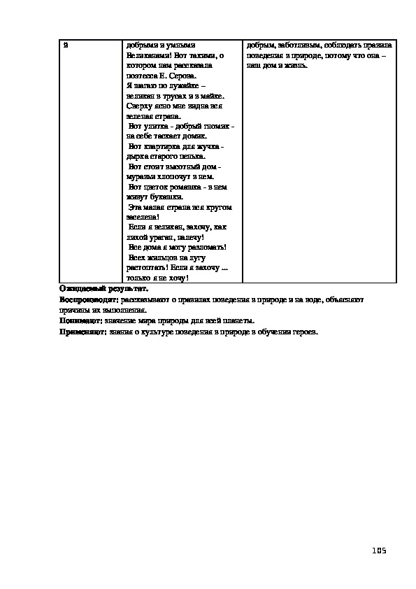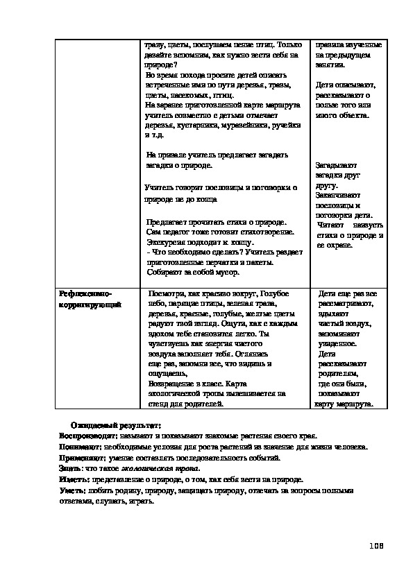 Иметь: представления о природе, о том, как себя вести на природе.