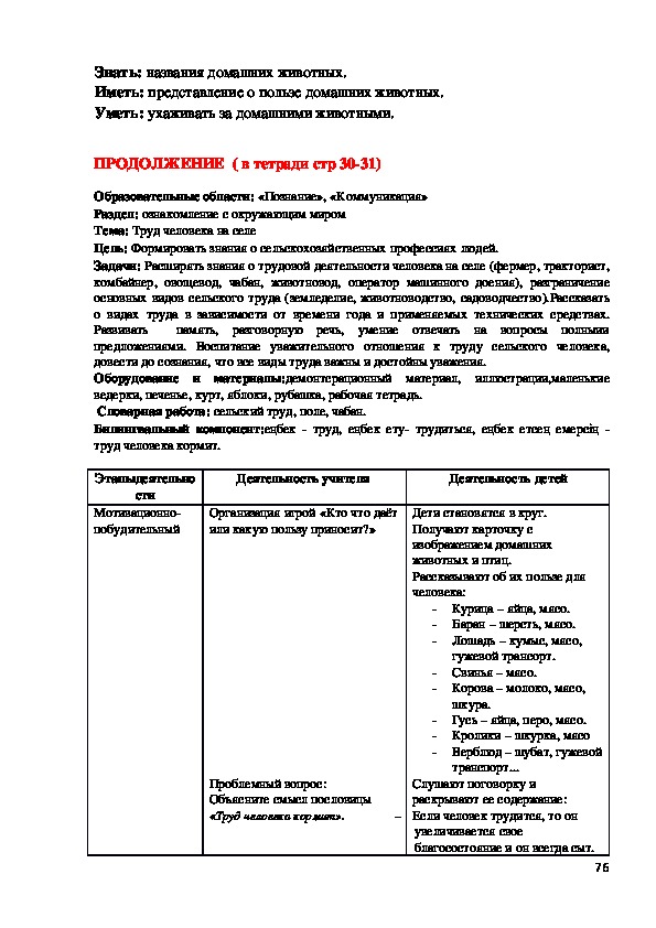 Домашние животные. Труд человека в селе.