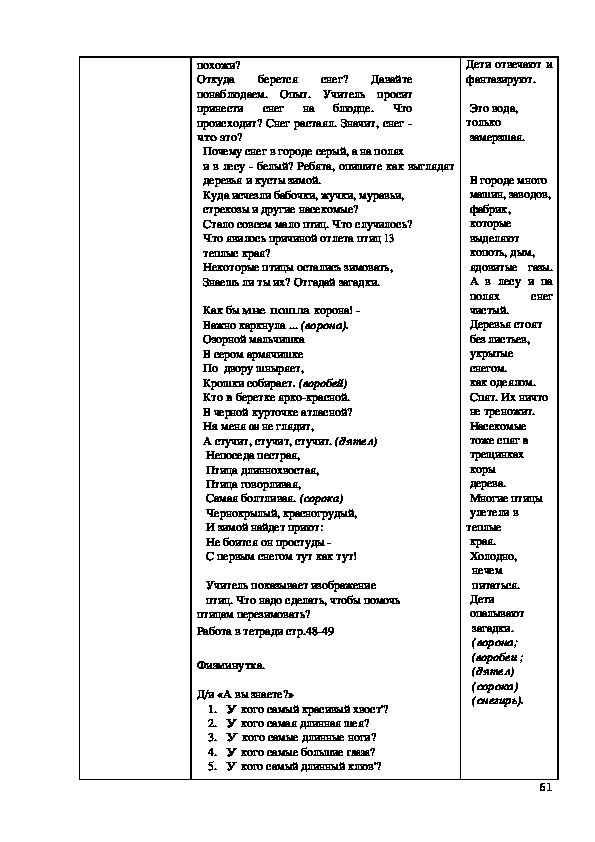 Зима. Как зимуют птицы. Как зимуют звери.