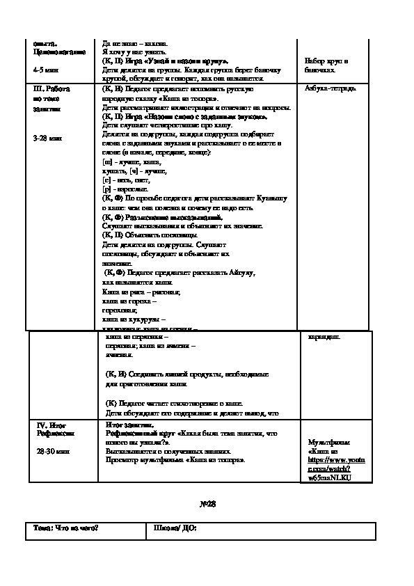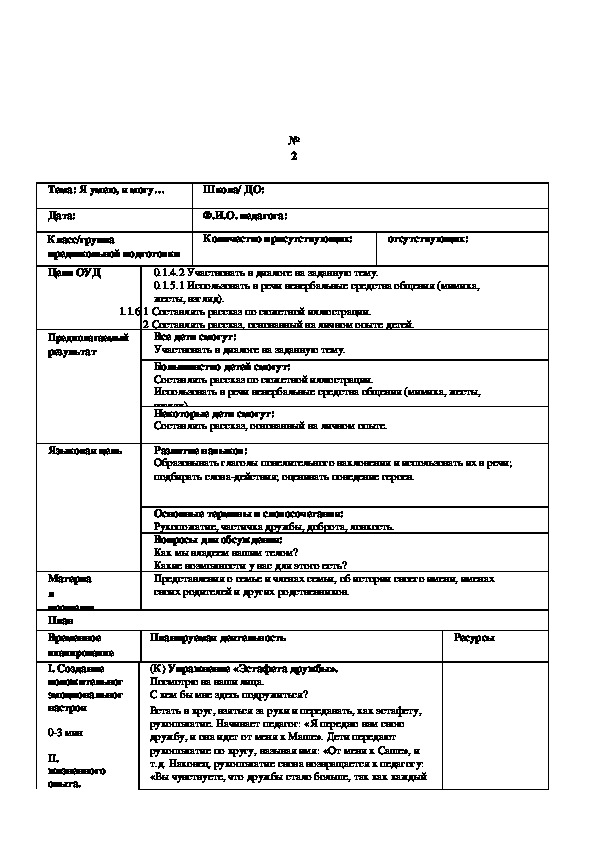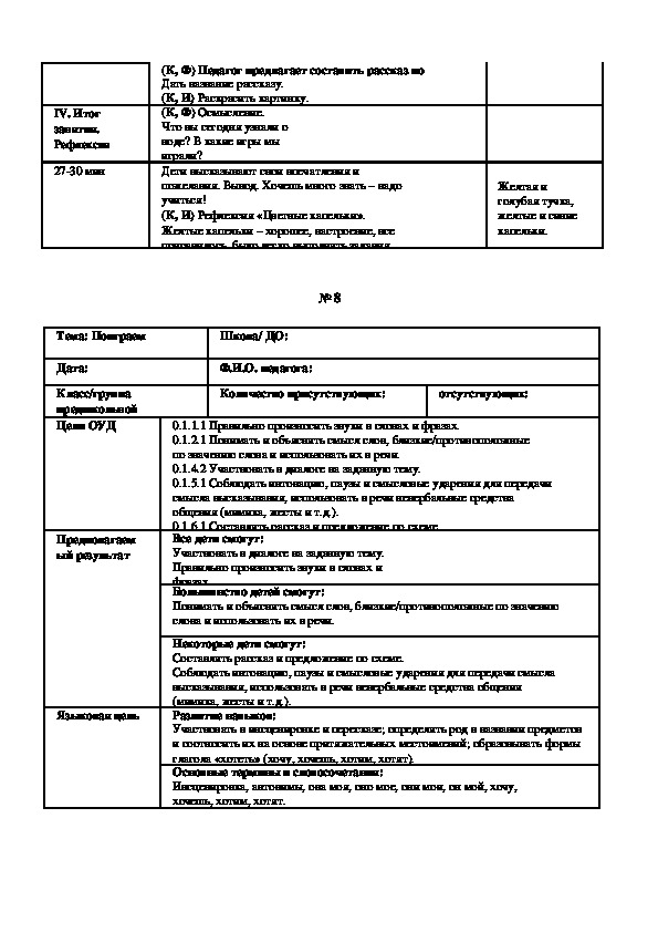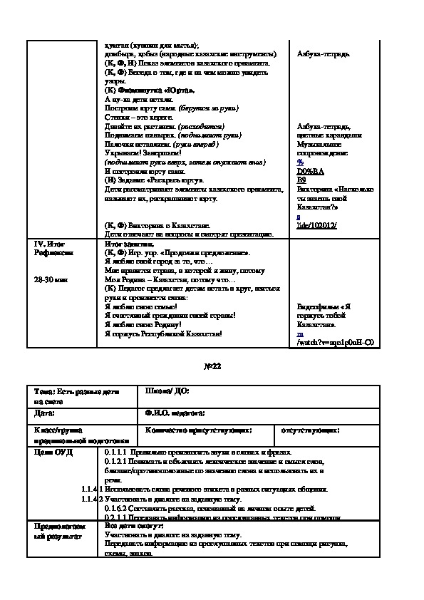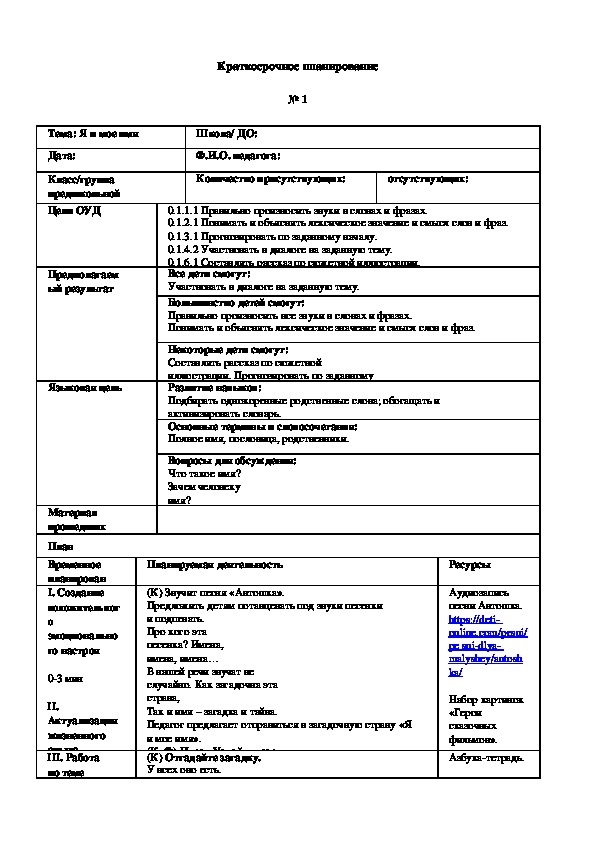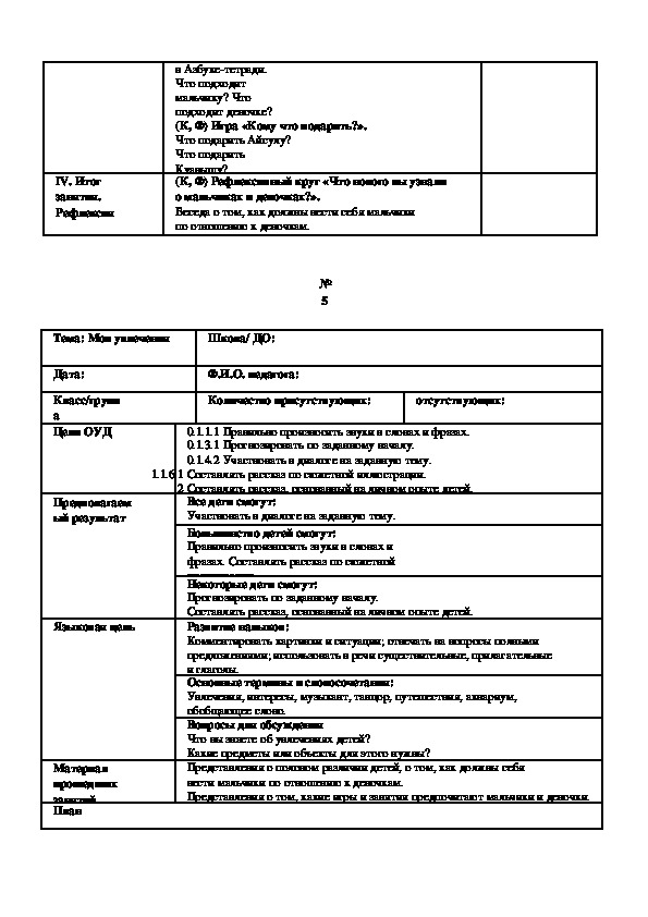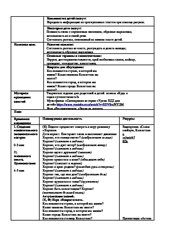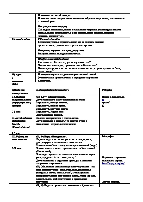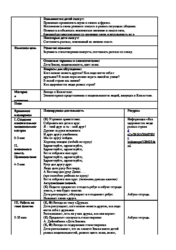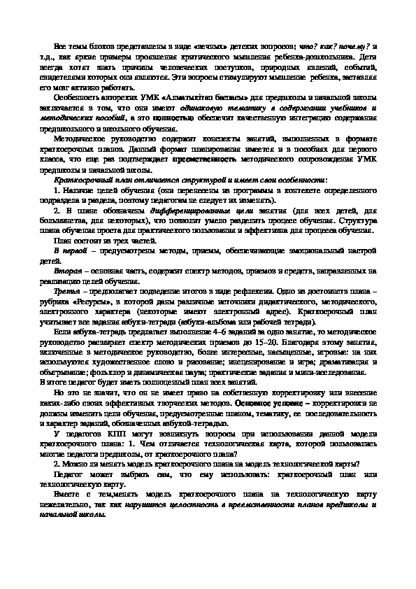 Руководство содержит конспекты занятий, выполненных в формате краткосрочных планов.