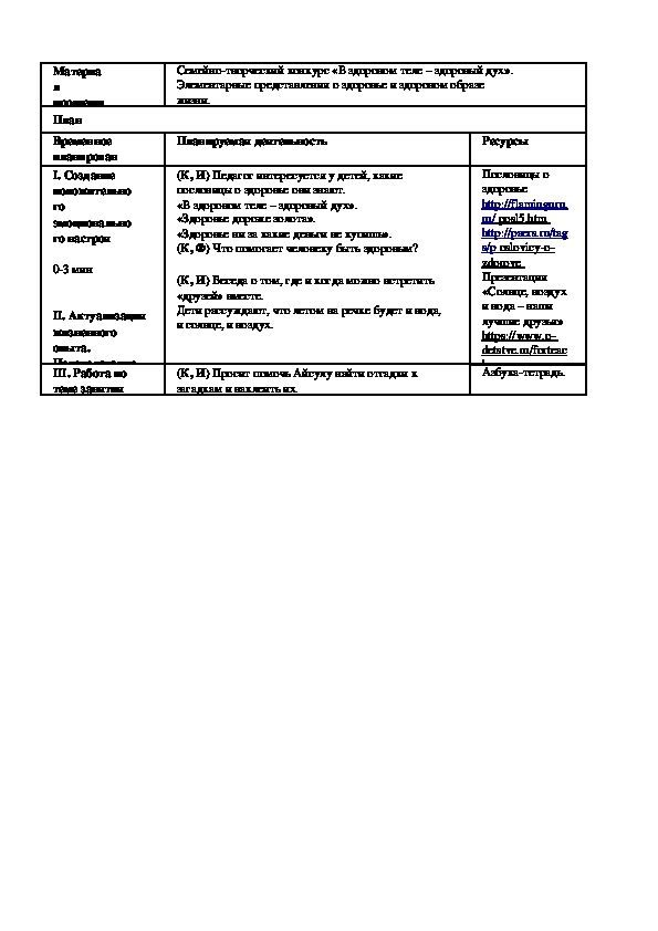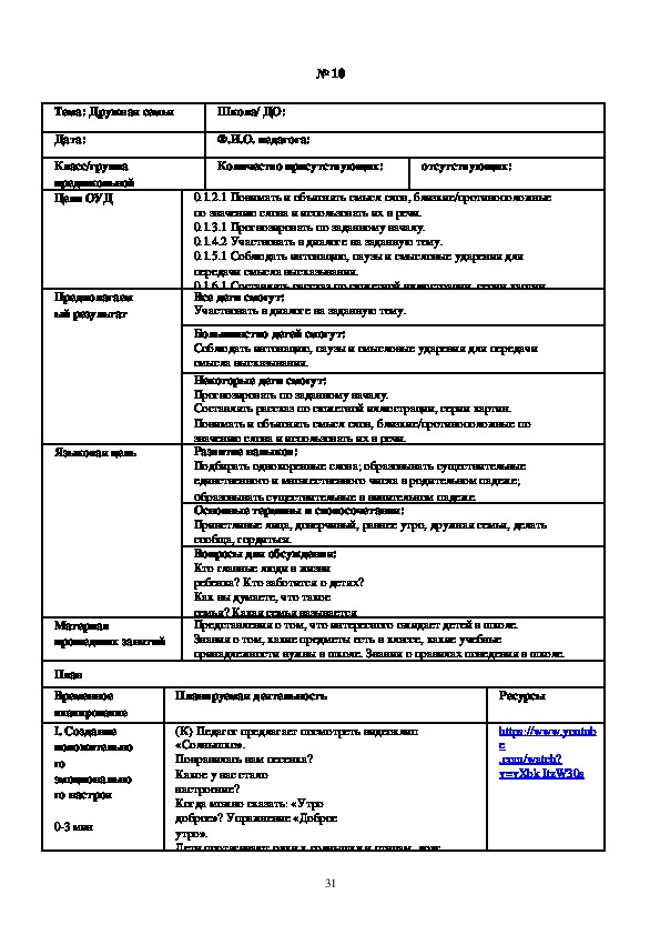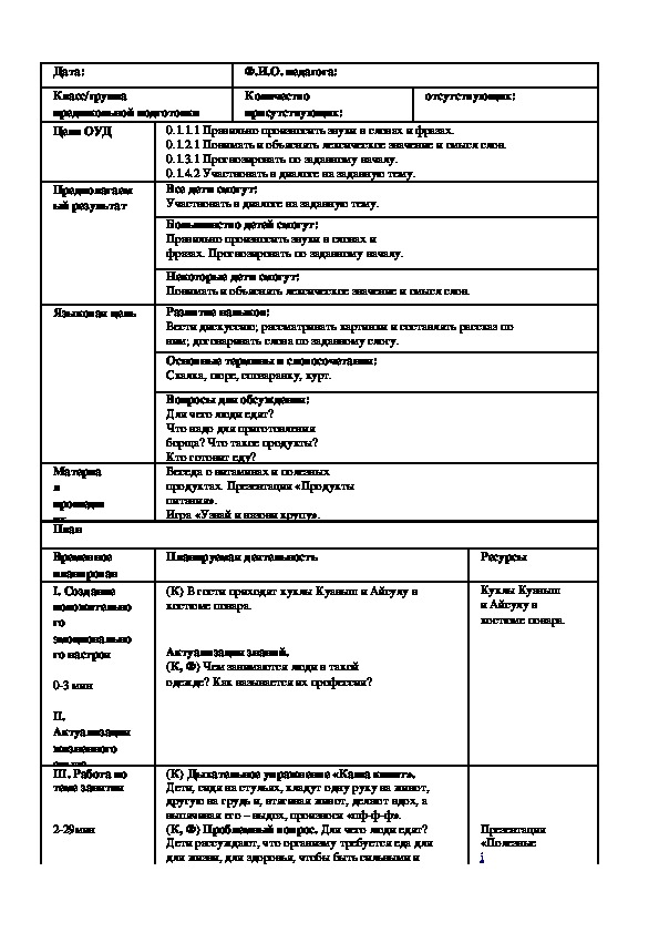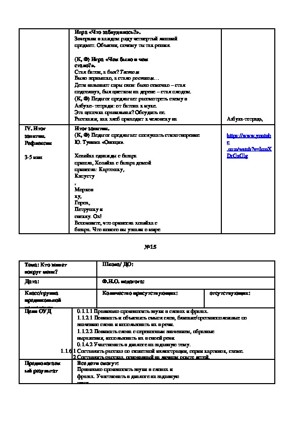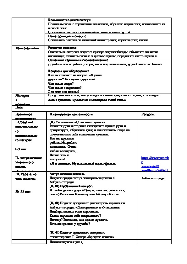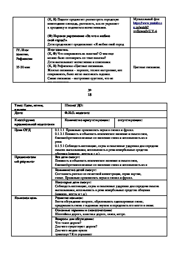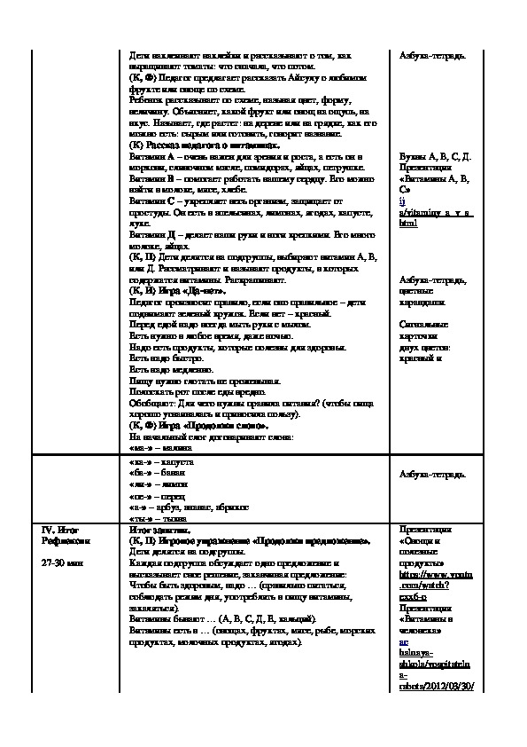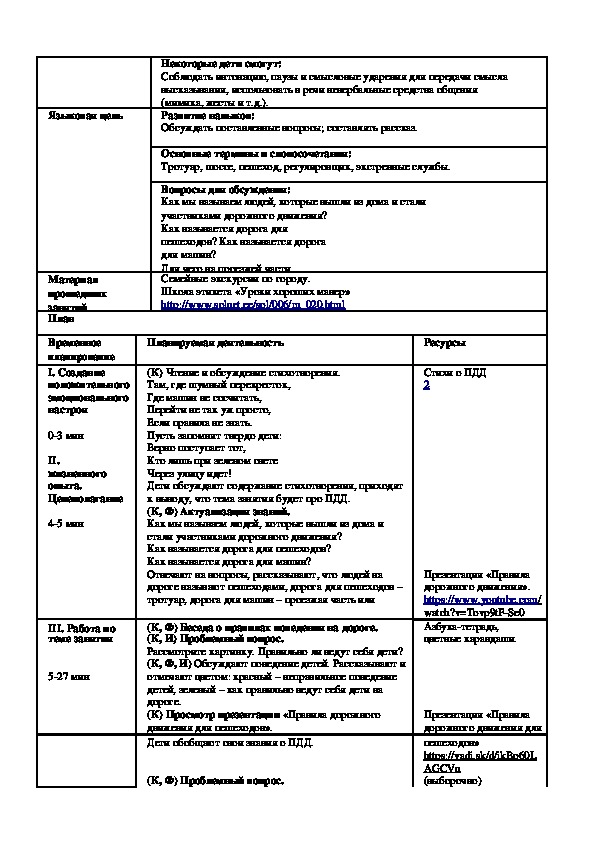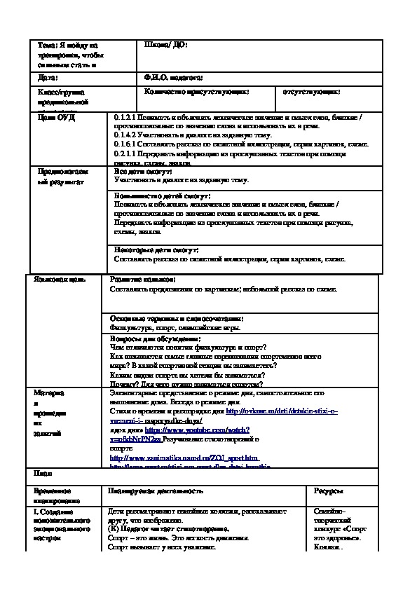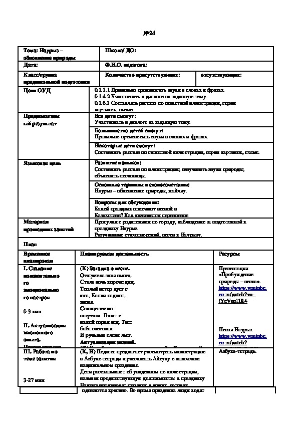 Руководство содержит конспекты занятий, выполненных в формате краткосрочных планов.