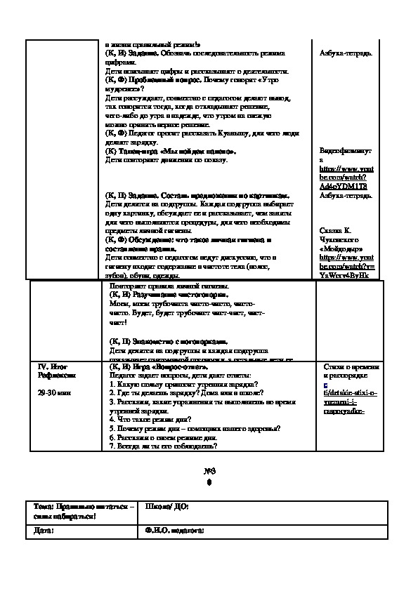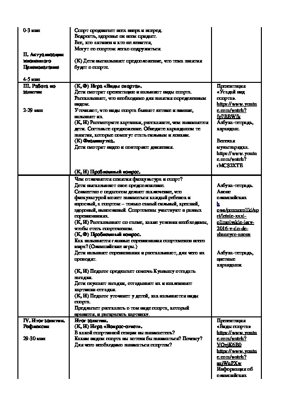 Данное планирование интересно еще и тем, что каждое занятие предлагает широкий спектр