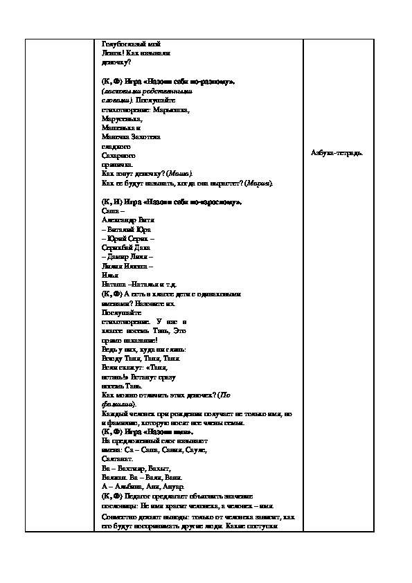(К, Ф) Педагог предлагает рассмотреть картинку в Азбуке