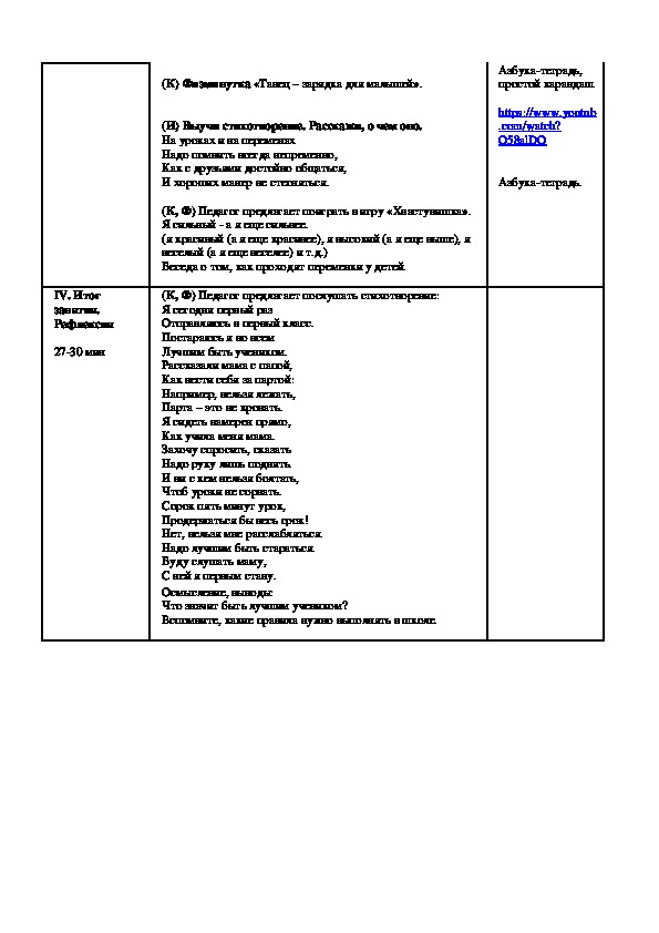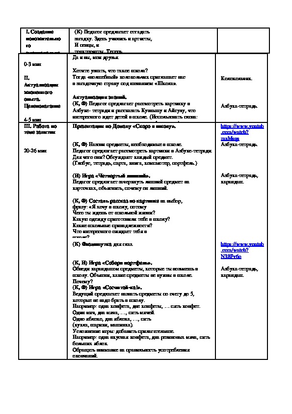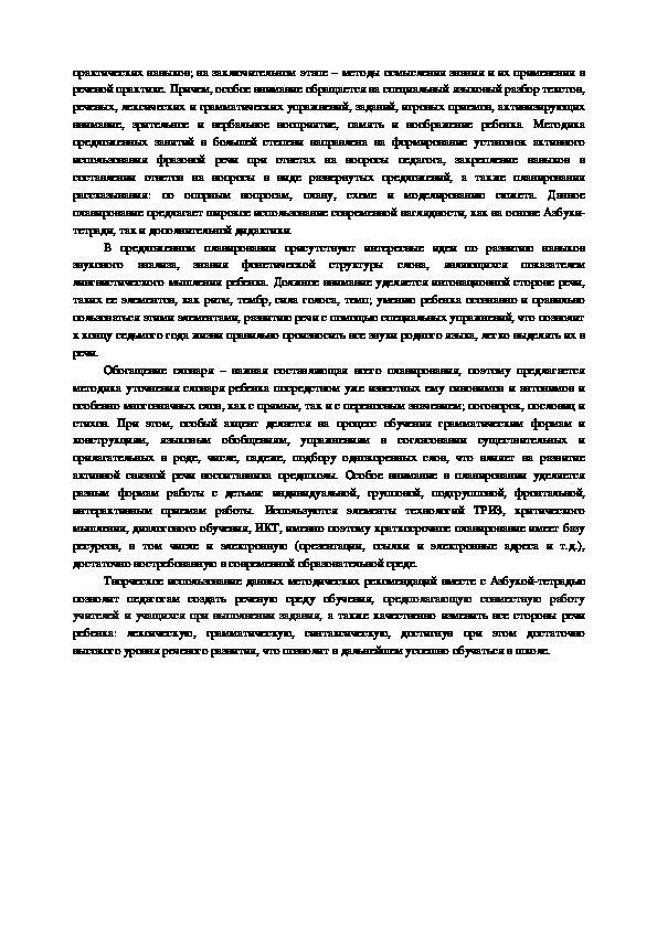 развития речи в предшколе с содержанием базового учебника 1 класса «Обучение грамоте» и Азбукой