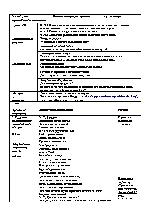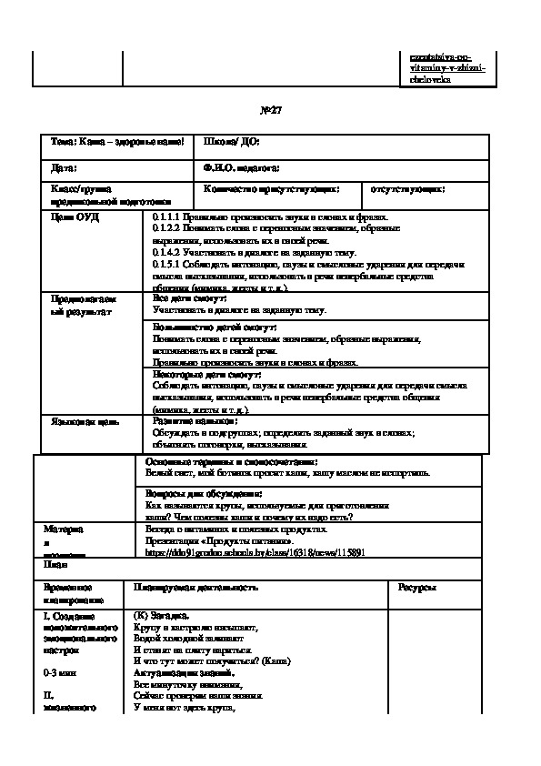 Обогащение словаря – важная составляющая всего планирования, поэтому предлагается