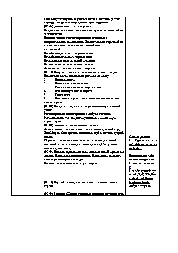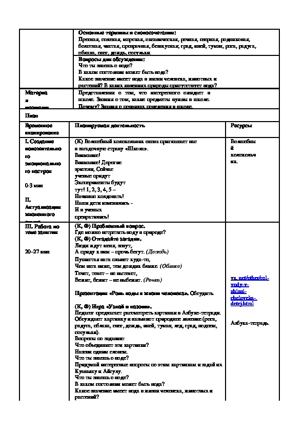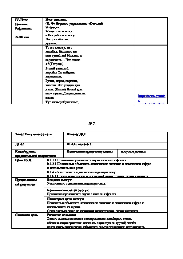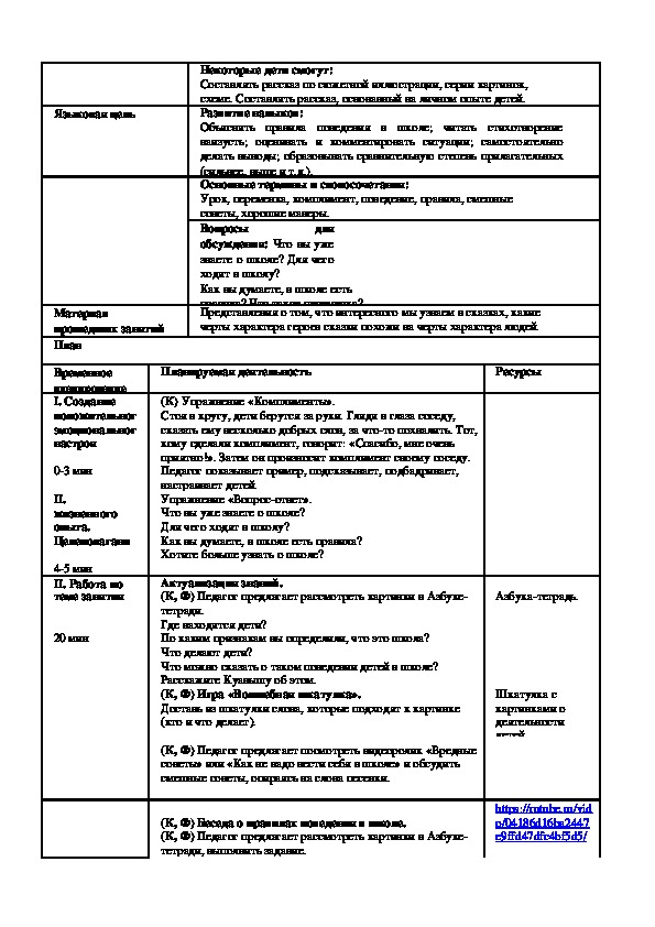 Руководство содержит конспекты занятий, выполненных в формате краткосрочных планов. Такой же формат планирования используется в ведущих зарубежных странах (Англия, Франция, Германия, Финляндия и др.) и внедрен в пособиях для учителей первого класса, что вновь является связующим звеном преемственности методического сопровождения предшколы и начальной школы.развитие речи