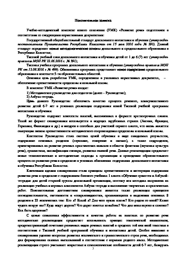 данного Руководства: обеспечить качество процесса речевого, коммуникативного развития детей 6-7 лет в условиях реализации содержания новой Типовой учебной программы воспитания и обучения.