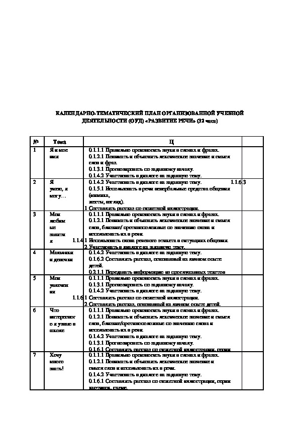 планировании уделено вопросам развития лексического и грамматического строя речи, необходимых