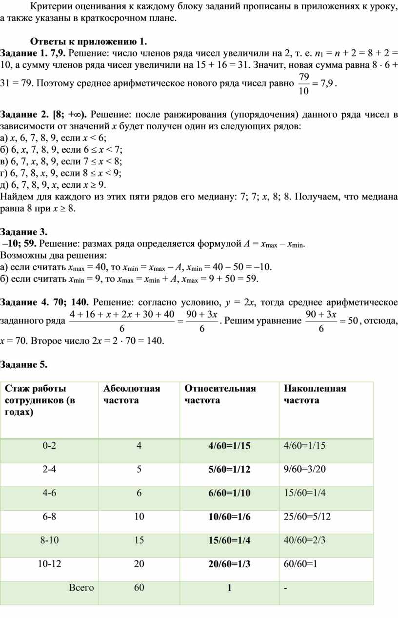 Задание 2. [8; +¥). Решение: после ранжирования (упорядочения) данного ряда чисел в зависимости от значений х будет получен один из следующих рядов: