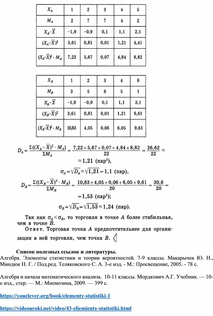 Есть другой способ вычисления дисперсии: нужно сначала вычислить среднее арифметическое самих чисел, затем — среднее арифметическое их квадратов, и наконец, из среднего арифметического квадратов вычесть квадрат среднего арифметического. Учитель вводит новую формулу для вычисления дисперсии числового ряда: