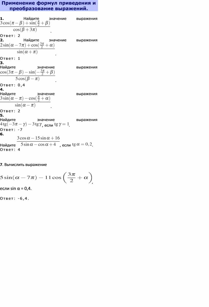 формул приведения и преобразование выражений.