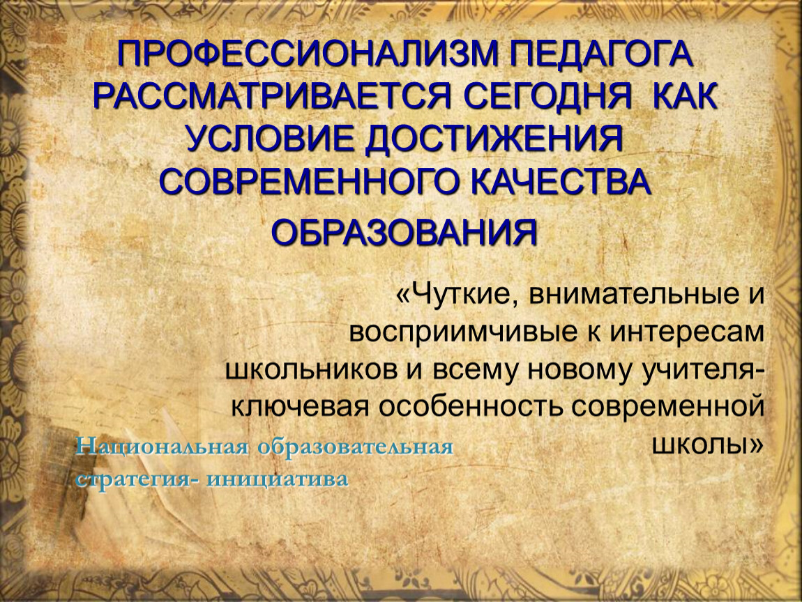ПРОФЕССИОНАЛИЗМ ПЕДАГОГА РАССМАТРИВАЕТСЯ СЕГОДНЯ КАК УСЛОВИЕ ДОСТИЖЕНИЯ СОВРЕМЕННОГО КАЧЕСТВА ОБРАЗОВАНИЯ
