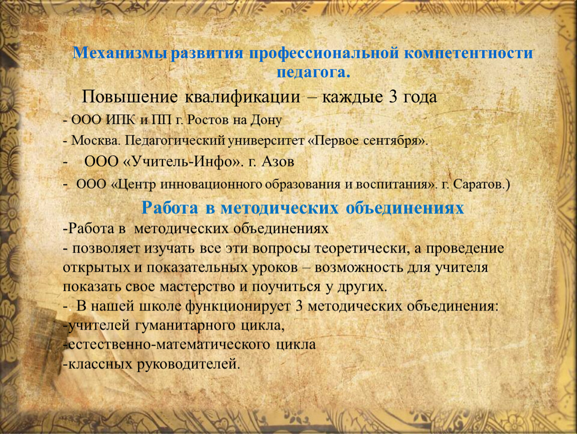 С помощью, каких механизмов можно организовать деятельность педагогов, направленную на развитие профессиональной компетентности?