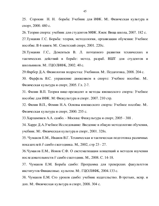 соответствующих методов самбо // Автор. дис. канд. пед. Наук. М., 2007. 18 с.44
