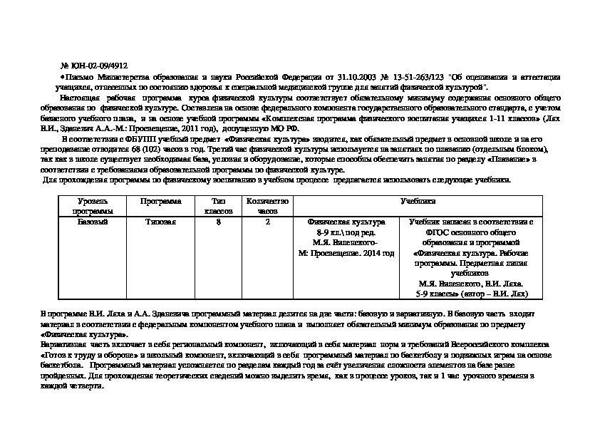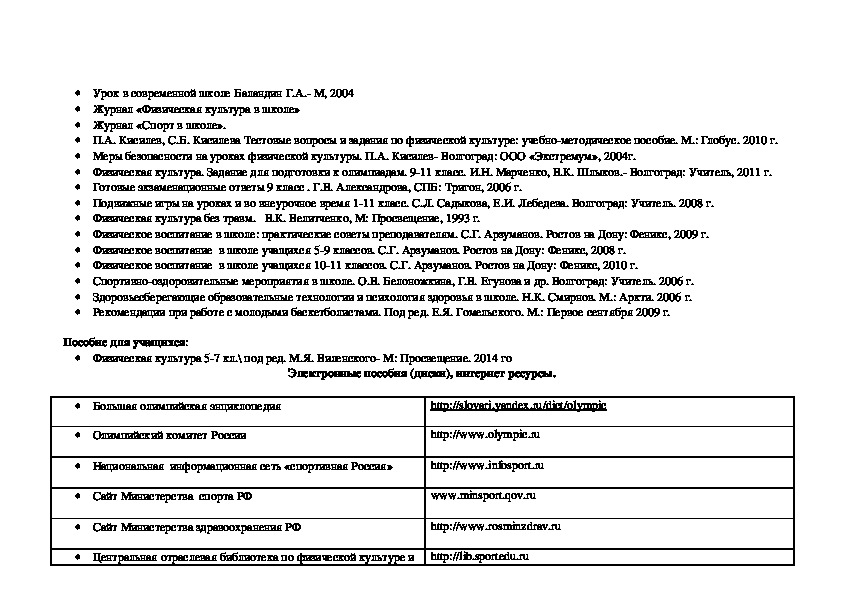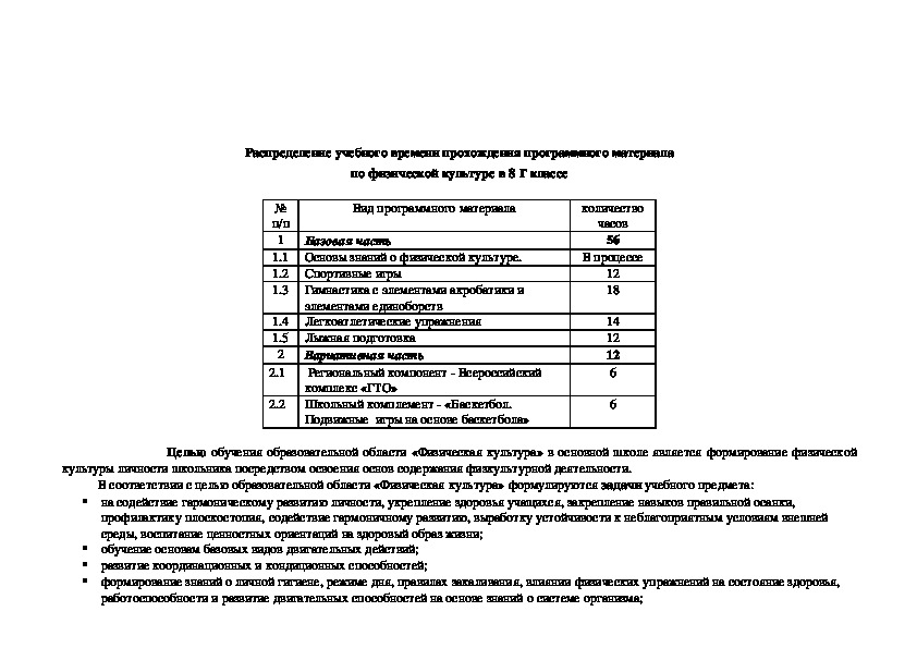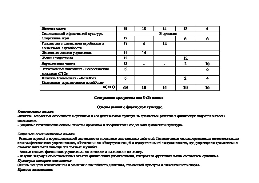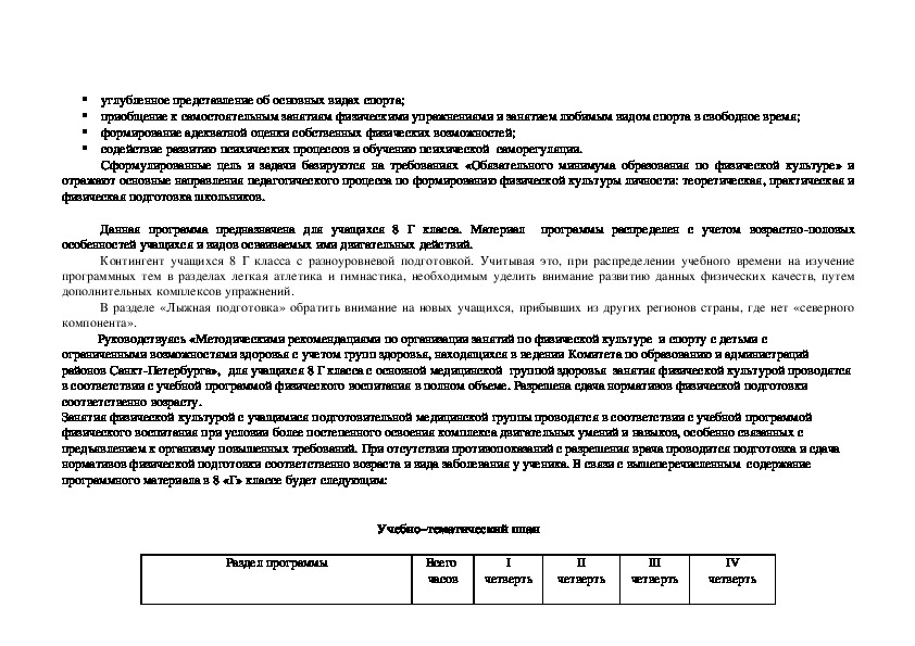 Для разработки рабочей учебной программы по физической культуре для 8 «г» класса были использованы следующие нормативные