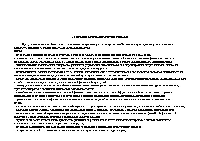 ОбразовательнаяФизическая культура» призвана сформировать у учащихся устойчивые мотивы и потребности в бережном отношении к своему здоровью и физической подготовленности, целостном развитии физических и психических качеств, творческом использовании средств физической культуры в организации здорового образа жизни. В процессе освоения учебного материала обеспечивается формирование целостного представления о единстве биологического, психического и социального в человеке, законах и закономерностях развития и совершенствова-ния его психосоматической природы.