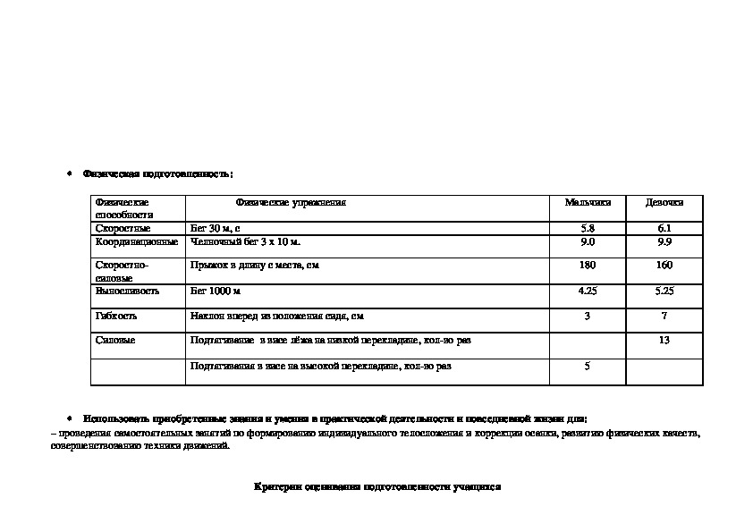 здоровью и физической подготовленности, целостном развитии физических и психических качеств, творческом использовании средств