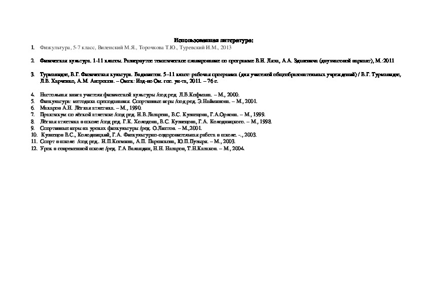 и учебника для общеобразовательных учреждений /В. И. Лях. - М. : Просвещение, 2012.