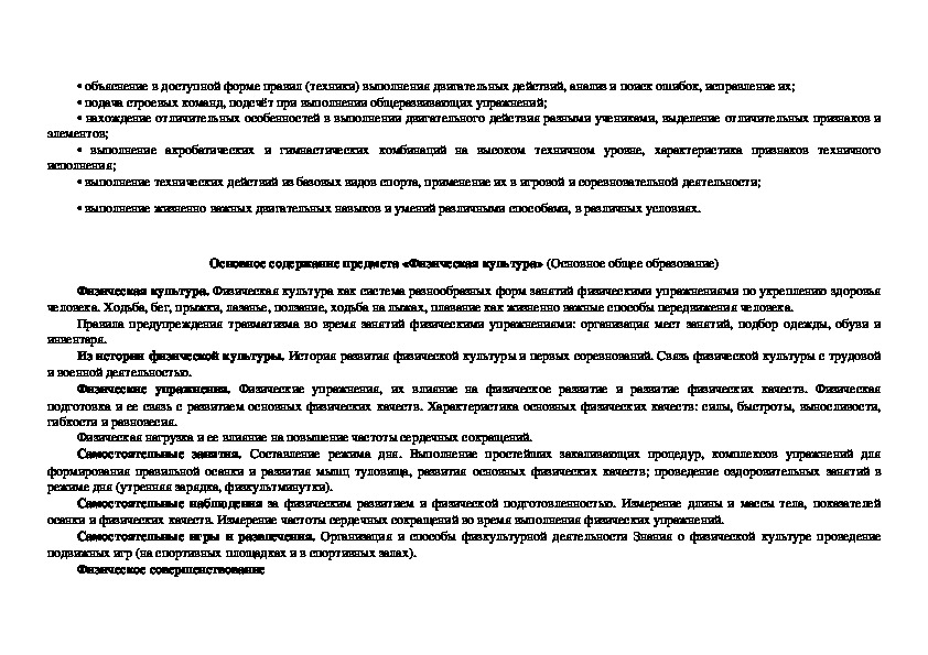 Предметом обучения физической культуре в основной школе является двигательная система человека с общеразвивающей направленностью. В