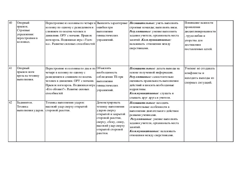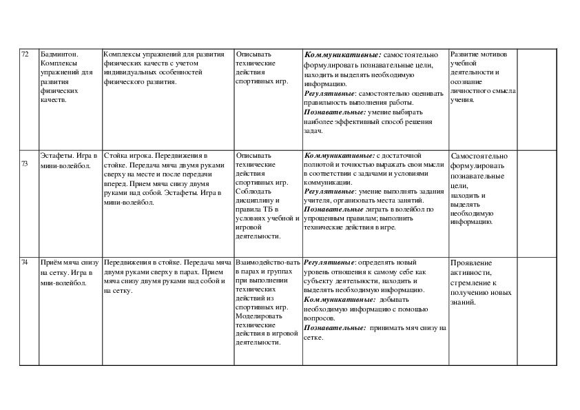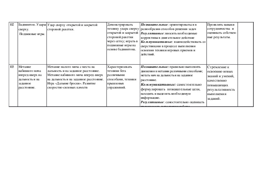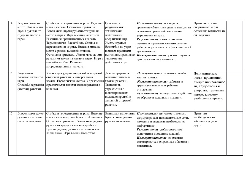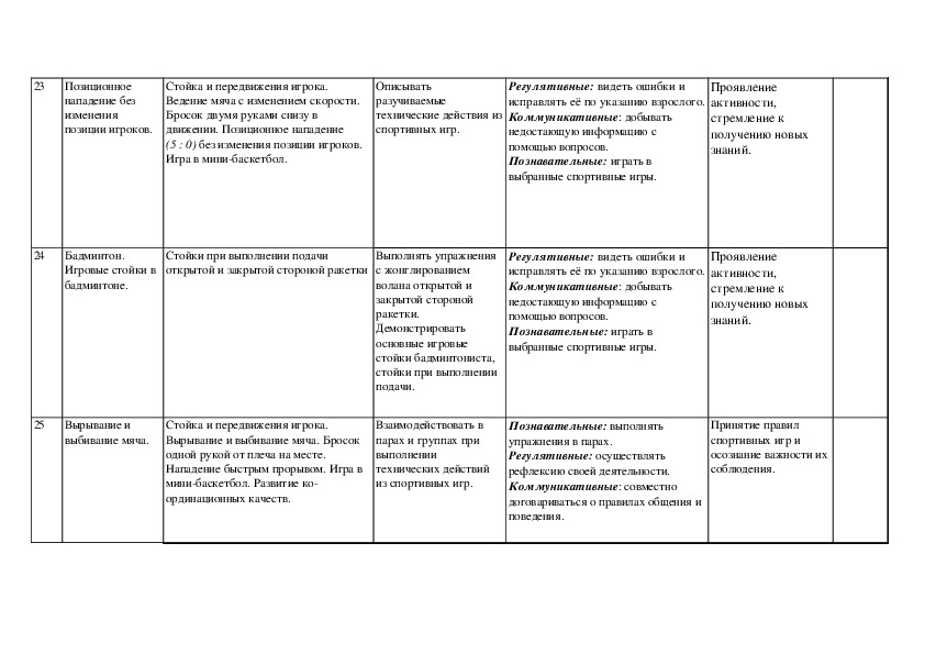 • выполнение технических действий из базовых видов спорта, применение их в игровой и соревновательной деятельности;
