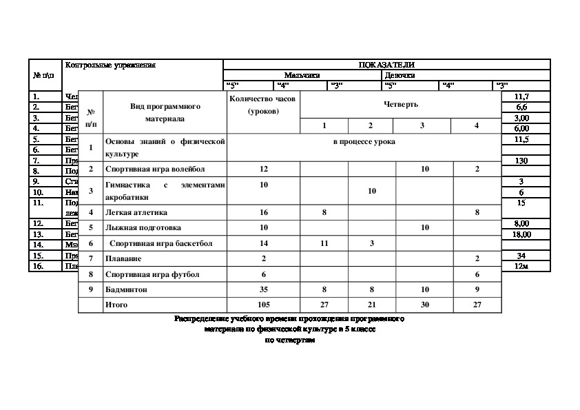 Согласно базисному (образовательному) плану образовательных учреждений РФ всего на изучение физической культуры в школе, по 105 ч в 5