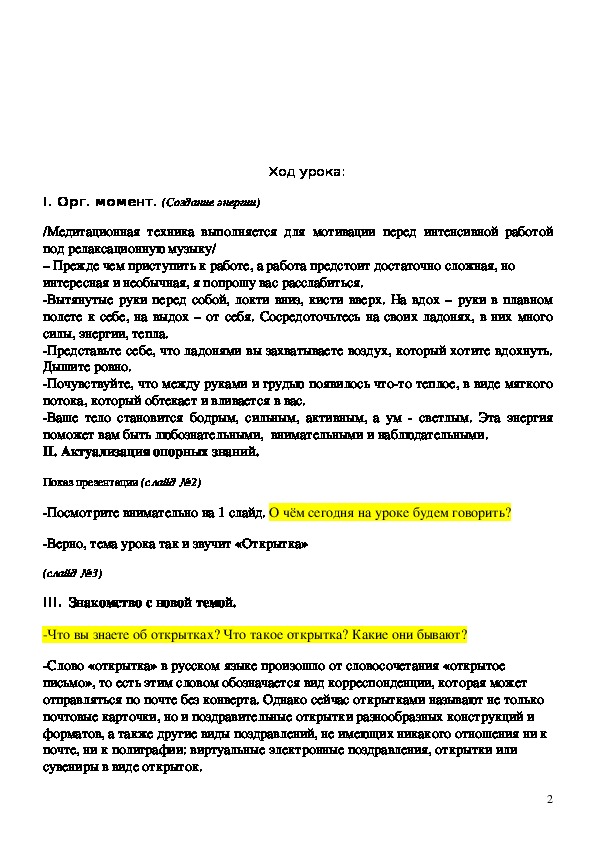 Цель урока: формирование у учащихся представления об открытке как о способе выражения