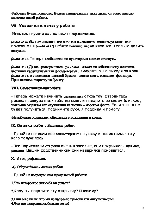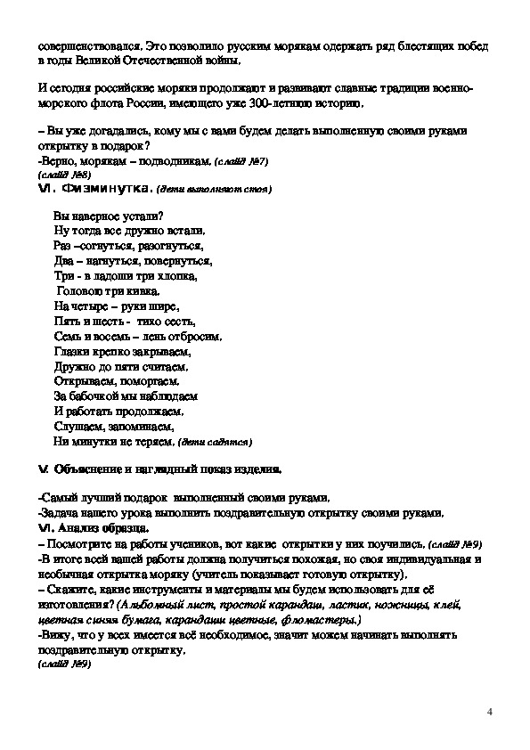 Материалы и оборудование: презентация, открытки, детские работы, технология изготовления.