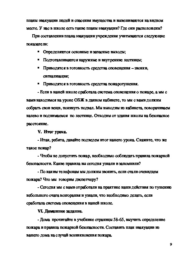пожара и правила пожарной безопасности. Составить план эвакуации из