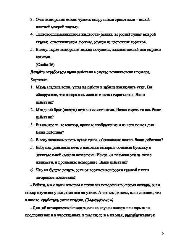 небольшого очага возгорания и узнали, что необходимо делать, если