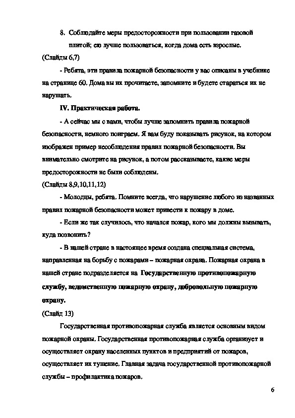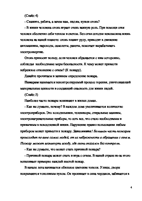 4. Научить обучающихся правильно действовать в случае обнаружения пожара;