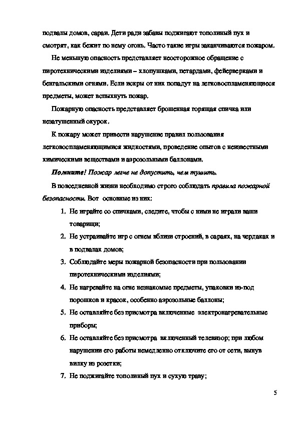 Чтобы не допустить пожар, необходимо соблюдать правила пожарной