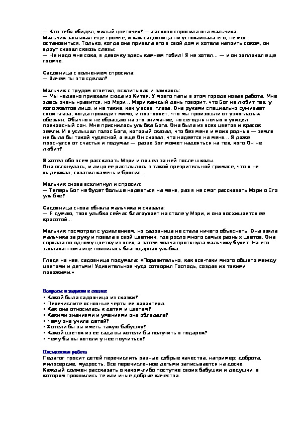 садовница. — Кто же это сегодня всех детей обижает?»— Кто тебя обидел, милый цветочек? — ласково спросила она мальчика.