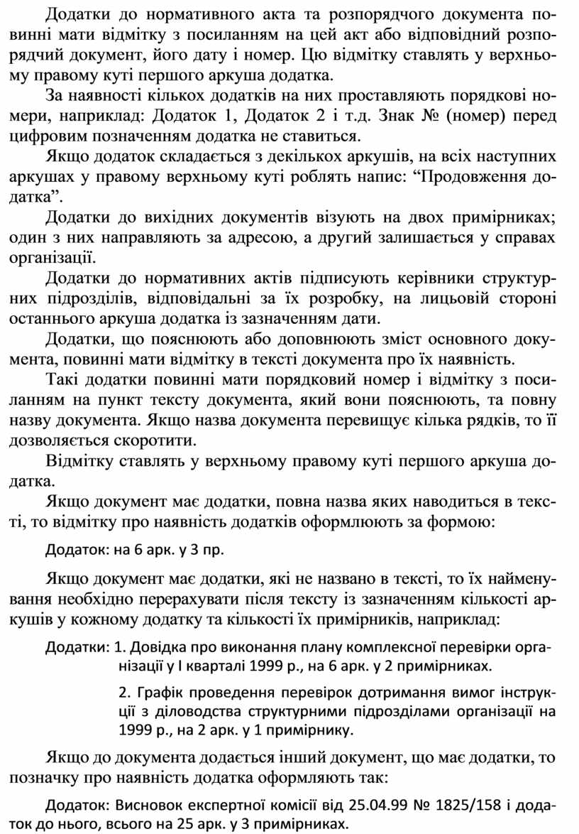 Додатки до нормативного акта та розпорядчого документа по- винні мати відмітку з посиланням на цей акт або відповідний розпо- рядчий документ, його дату і номер. Цю відмітку ставлять у верхньо- му правому куті першого аркуша додатка.