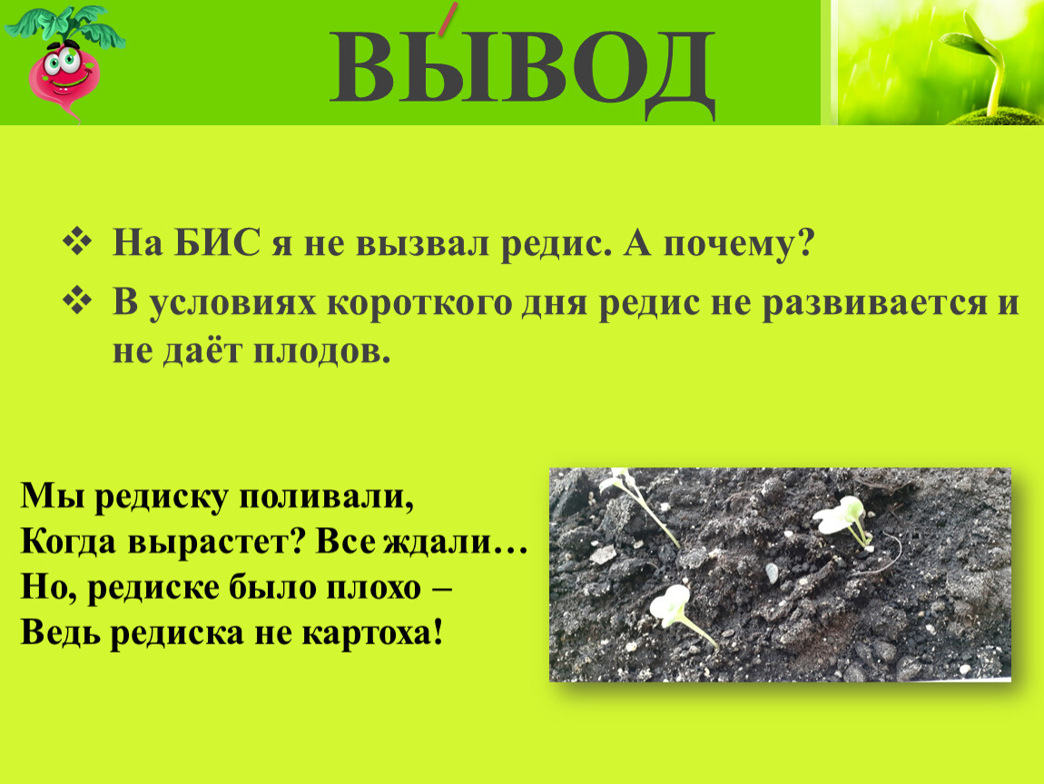 В условиях короткого дня редис не развивается и не даёт плодов.