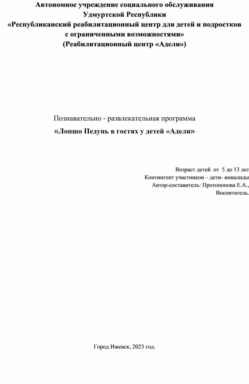 Ведущая: Ребята, а вы узнали, кто это к нам пришел! Правильно, это герой удмуртских сказок Лопшо Педунь. Он очень трудолюбив, любая работа у него в руках спорится. А еще его любят за веселый нрав и умения веселить народ в деревне.