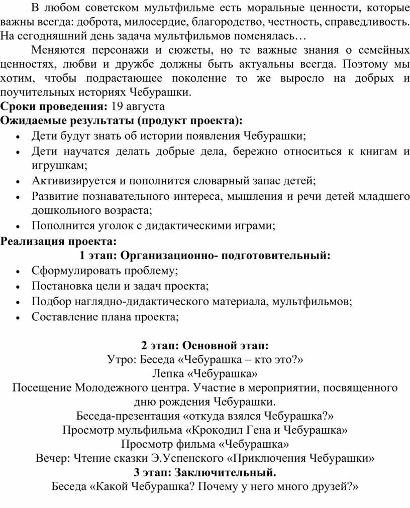 Меняются персонажи и сюжеты, но те важные знания о семейных ценностях, любви и дружбе должны быть актуальны всегда. Поэтому мы хотим, чтобы подрастающее поколение то же выросло на добрых и поучительных историях Чебурашки.