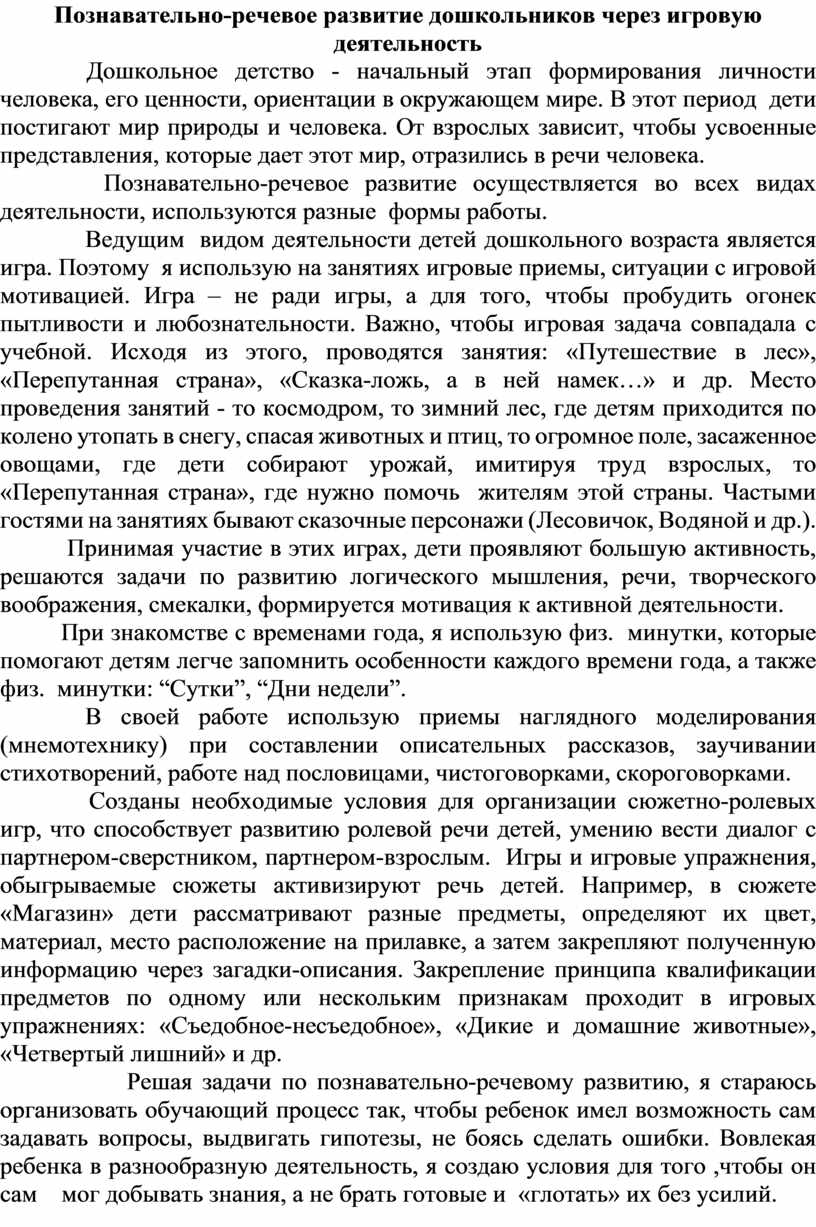 Познавательно-речевое развитие дошкольников через игровую деятельность