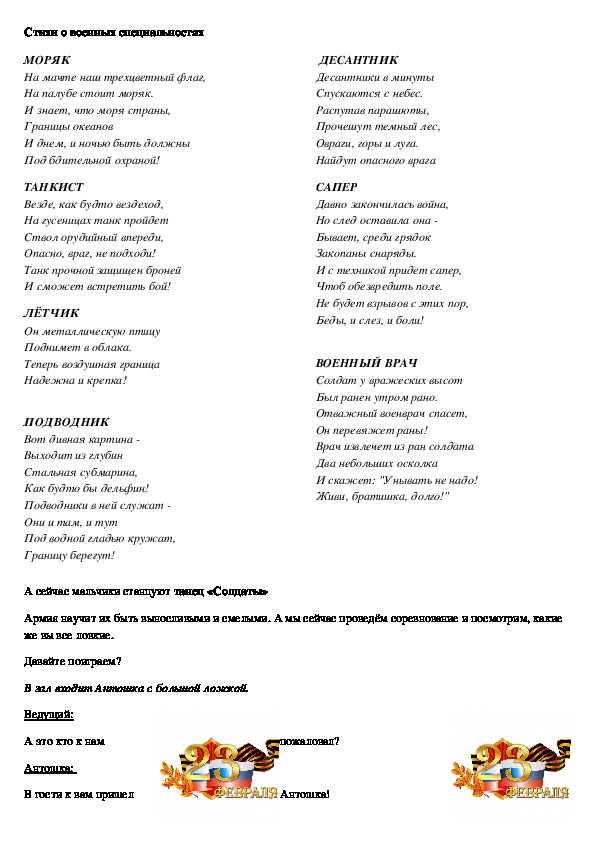 специальность: станет лётчиком, моряком, танкистом…Стихи о военных специальностях