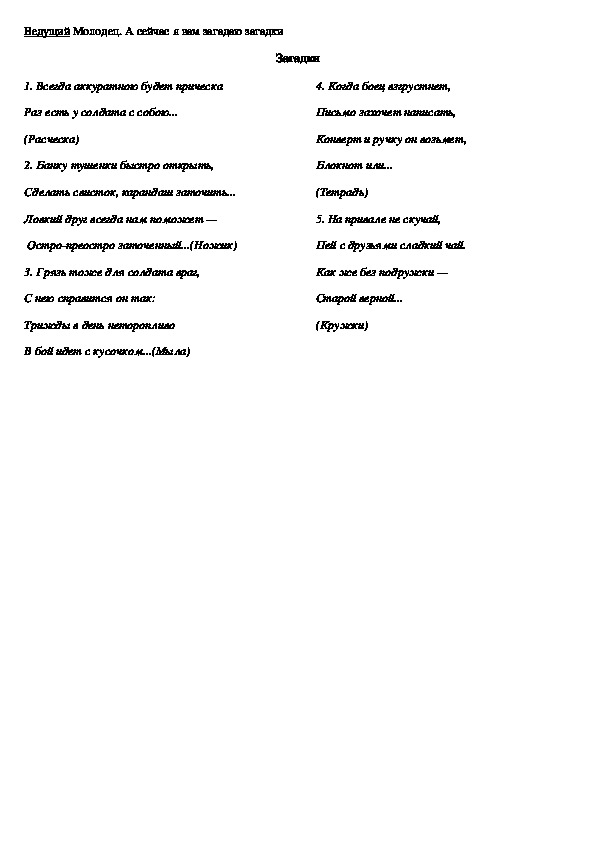 А я внимательный, я очень быстро доставил пакет с донесеньемВедущий Молодец. А сейчас я вам загадаю загадки