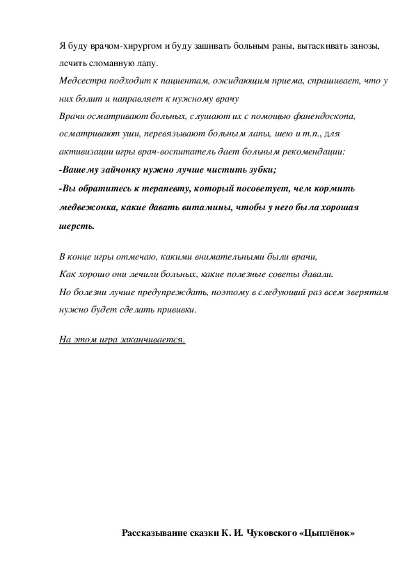 Предварительная работа: чтение сказки К. И. Чуковского «Федорино