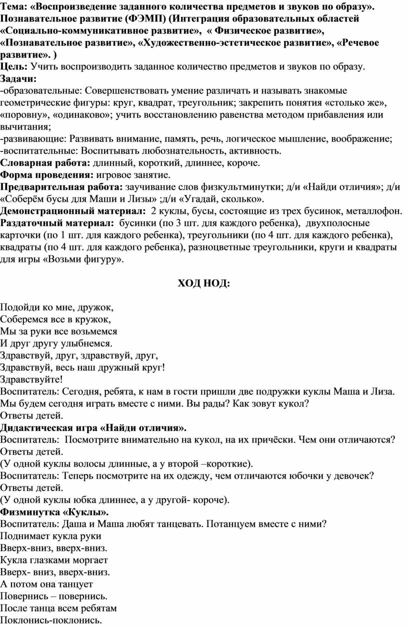 Познавательное развитие (ФЭМП) (Интеграция образовательных областей «Социально-коммуникативное развитие», « Физическое развитие», «Познавательное развитие», «Художественно-эстетическое развитие», «Речевое развитие». )