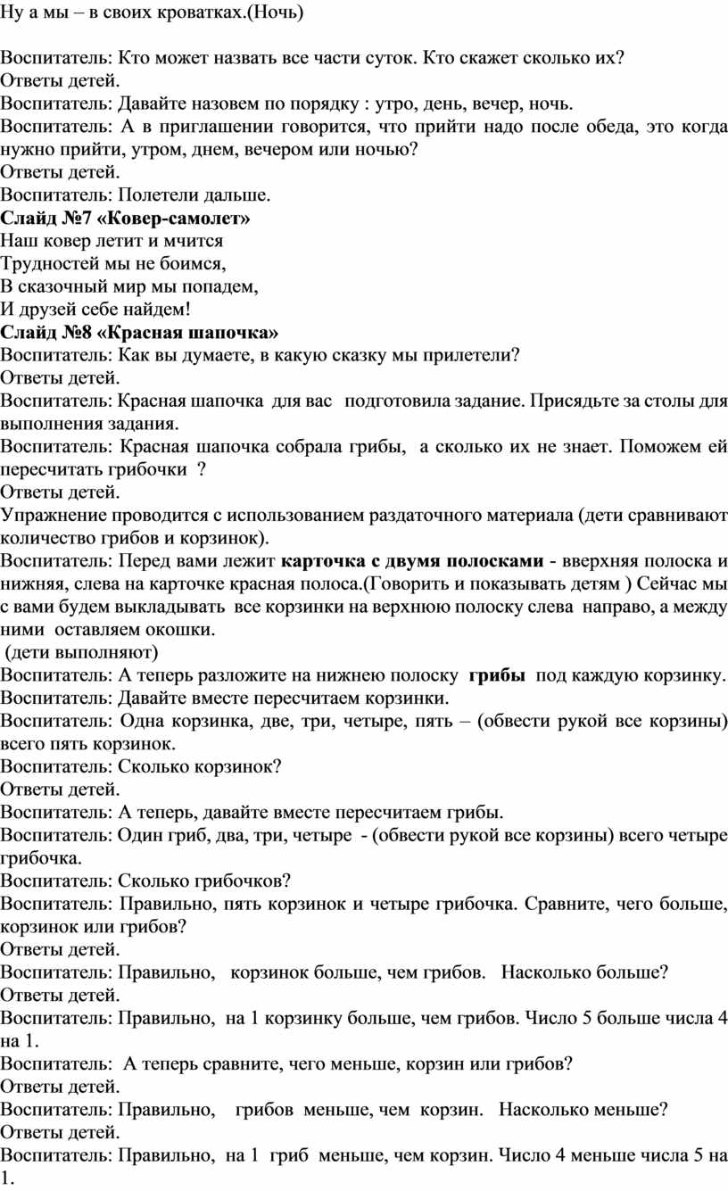 Воспитатель: Правильно, корзинок больше, чем грибов. Насколько больше?