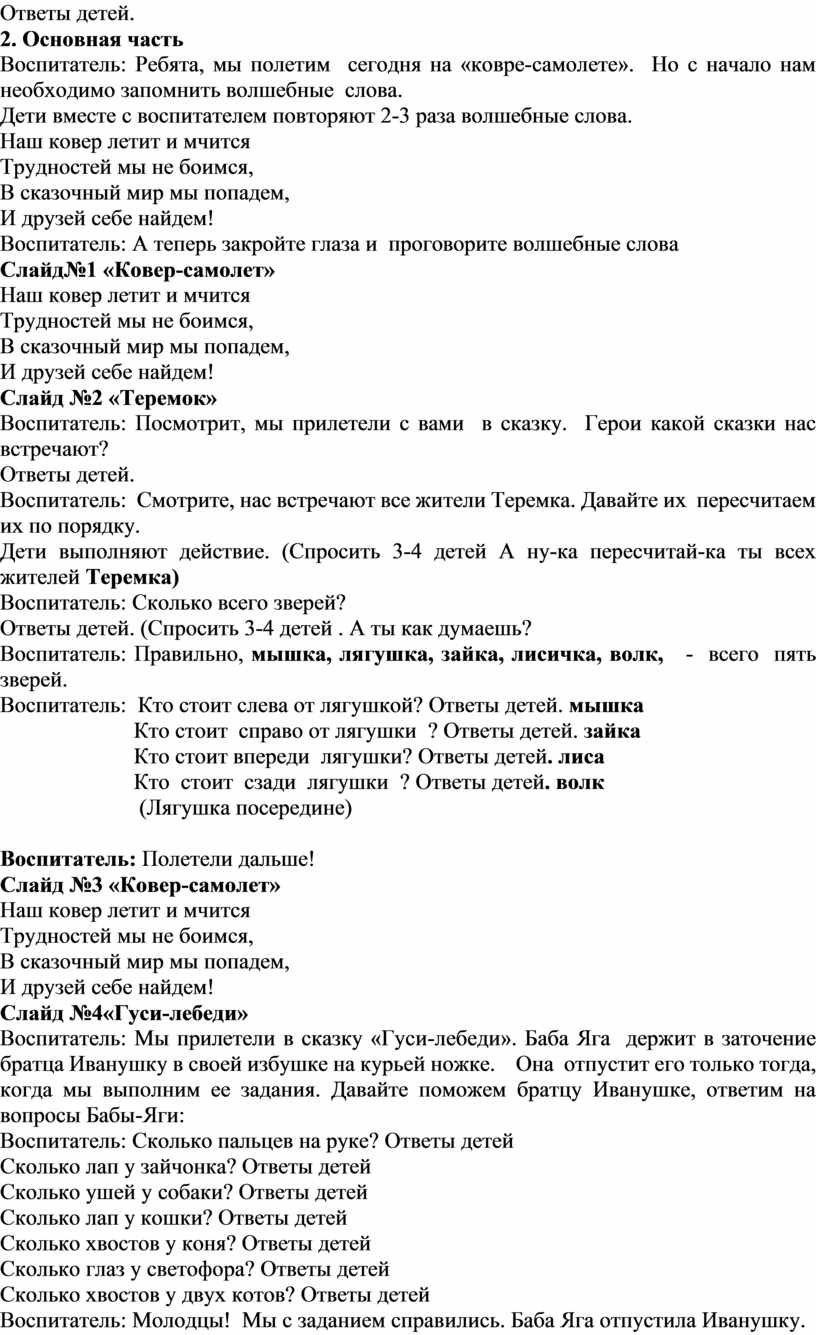 Воспитатель: Но с начало ответьте мне, ребята, вы любите сказки?
