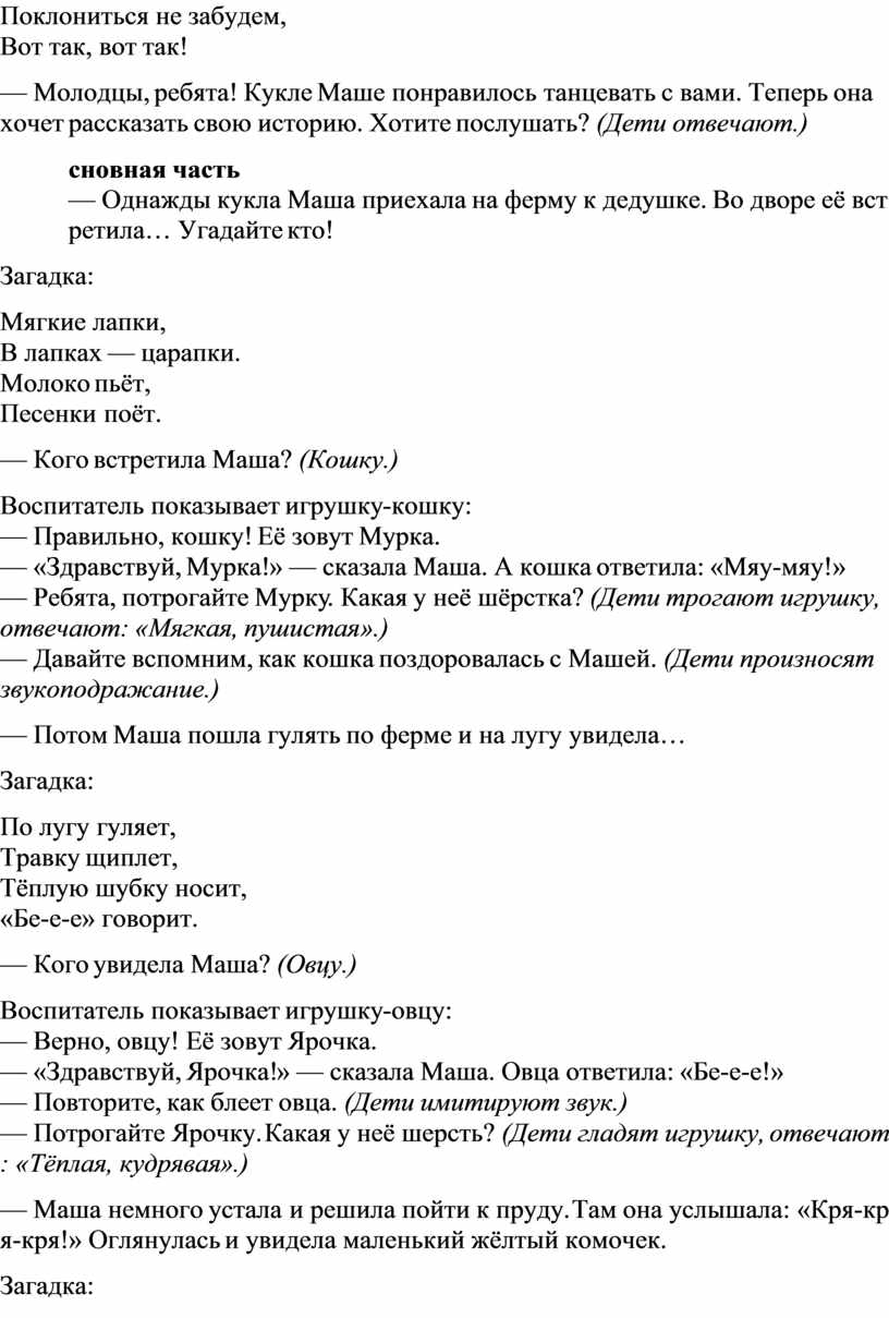 Познавательное развитие в группе раннего возраста на тему: «Кукла Маша в гостях у дедушки на ферме»