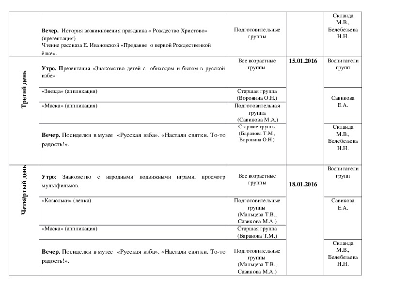 Белебезьева Н.Н.Тема: Творческий познавательноразвлекательный проект «Гуляют ребятки в зимние святки»