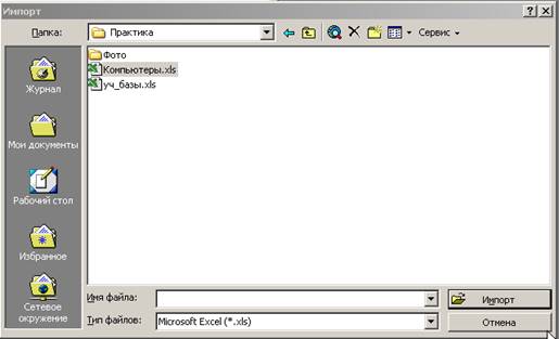 2. Создайте таблицы Компьютеры, Принтеры, Мониторы путем импортирования из файла Компьютеры.xls следующим образом.