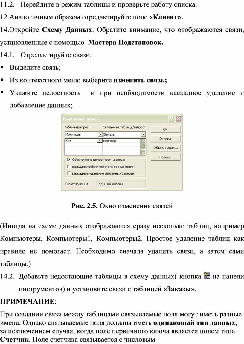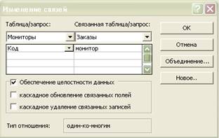 § При создании связи между таблицами связываемые поля могут иметь разные имена. Однако связываемые поля должны иметь одинаковый тип данных, за исключением случая, когда поле первичного ключа является полем типа Счетчик. Поле счетчика связывается с числовым полем, если свойство Размер поля обоих полей имеет значение Длинное целое.